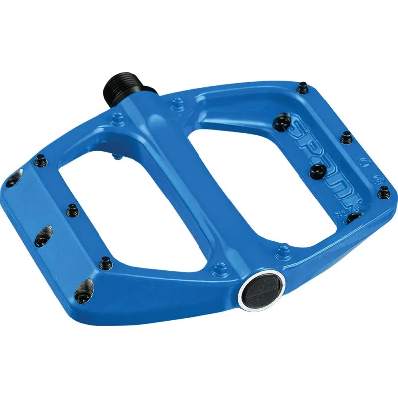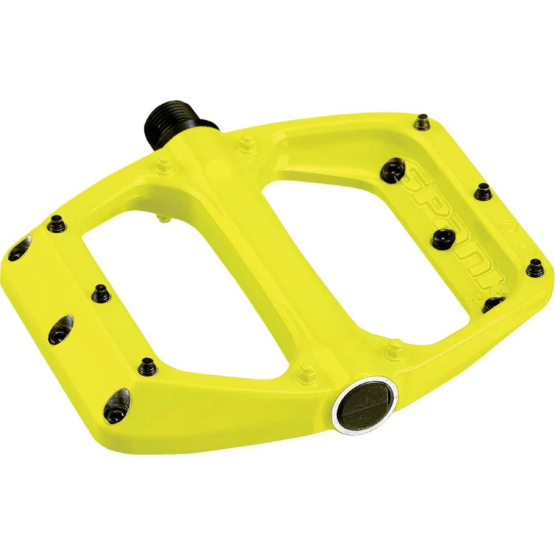 Destinées à l’All Mountain et au Freeride, les pédales plates Spoon 100 DC de SPANK raviront les riders cherchant le bon compromis entre poids et solidité. Offrant une grande surface d’appuie fine (16 mm) et une énorme accroche grâce à ses 10 picots – dont 6 en acier et 4 en aluminium – vissés par face. Sa plateforme en aluminium de 100 x 105 mm conçu en une seule pièce et sa forme concave garantissent maintient et grip. De plus, ces pédales disposent d’un axe en acier chromoly et de roulements industriels de gros diamètres, gage de fiabilité dans le temps.