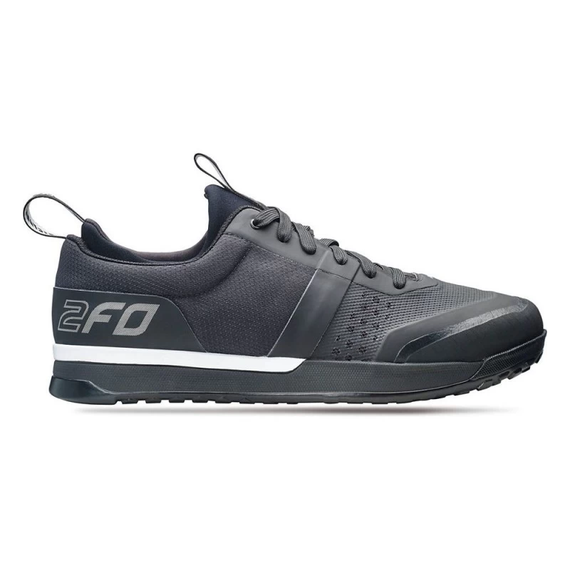 La 2FO Flat 1.0 a Ă©tĂ© conçue pour ĂȘtre confortable toute la journĂ©e sur le vĂ©lo et faire bonne figure aprĂšs. Sa semelle extĂ©rieure est rĂ©alisĂ©e dans notre caoutchouc SlipNot 2.0 qui a Ă©tĂ© conçu comme un systĂšme pour crĂ©er la meilleure connexion possible Ă la pĂ©dale. Contrairement Ă ce qu’on croit souvent, la connexion Ă la pĂ©dale n’est pas qu’une question de caoutchouc : il y a certes la duretĂ©, l’adhĂ©sivitĂ© et la densitĂ© du caoutchouc, mais la disposition des crampons, l’Ă©paisseur de la semelle intermĂ©diaire, etc. comptent aussi. En plus de la nouvelle semelle, nous avons insĂ©rĂ© de la mousse dans le dessus de l’avant-pied pour le protĂ©ger des rochers et des racines.