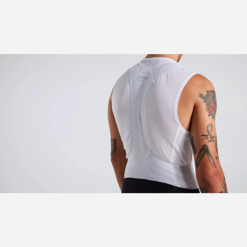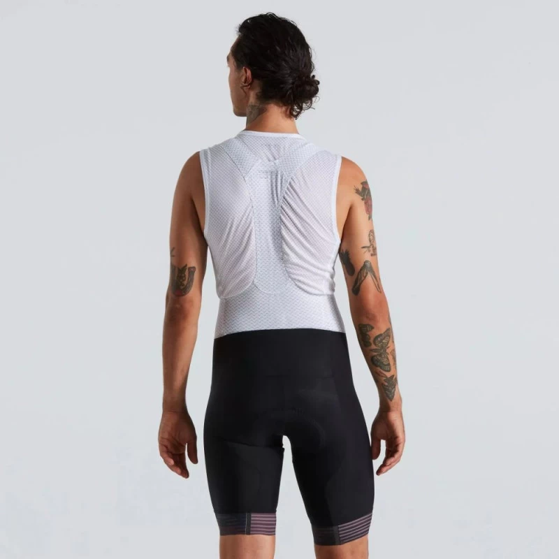 - La construction supérieure des bretelles est coupée au laser, pliée et soudée réduisant les frottements et les surépaisseurs. Le tissu des bretelles, quant à lui, incorpore un fil de carbone aux propriétés antibactériennes et permettant une excellente régulation thermique.