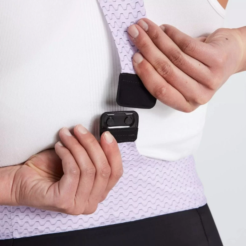 - Le bas du cuissard utilise une bande élastique large avec un revêtement léger et doux en silicone permettant de garder le cuissard en place sans exercer de pression.