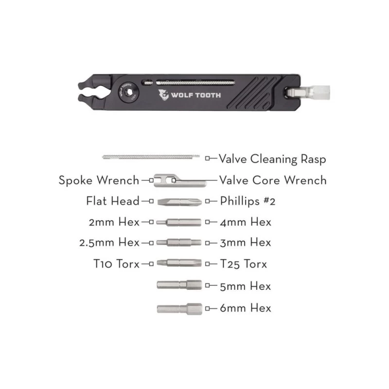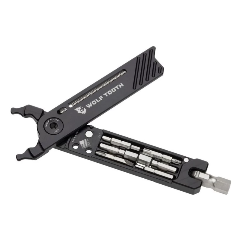 Le Wolf Tooth 8-Bit Pack Pliers est un multi-Outils léger doté de 17 fonctions. Huit accessoires s’emboîtent à l’intérieur des poignées de la pince à maillons rapides à l’aide d’aimants et d’un système de rangement intelligent. Ces accessoires s’insèrent ensuite dans une tête pivotante de 8 mm, dotée d’une ouverture de 4 mm pour les embouts hexagonaux, ce qui ajoute des fonctionnalités à la pince à maillons déjà polyvalente. Ce nouvel outil multifonction a été créé pour résoudre presque toutes les réparations mineures, en VTT et sur route.